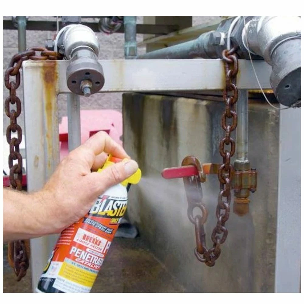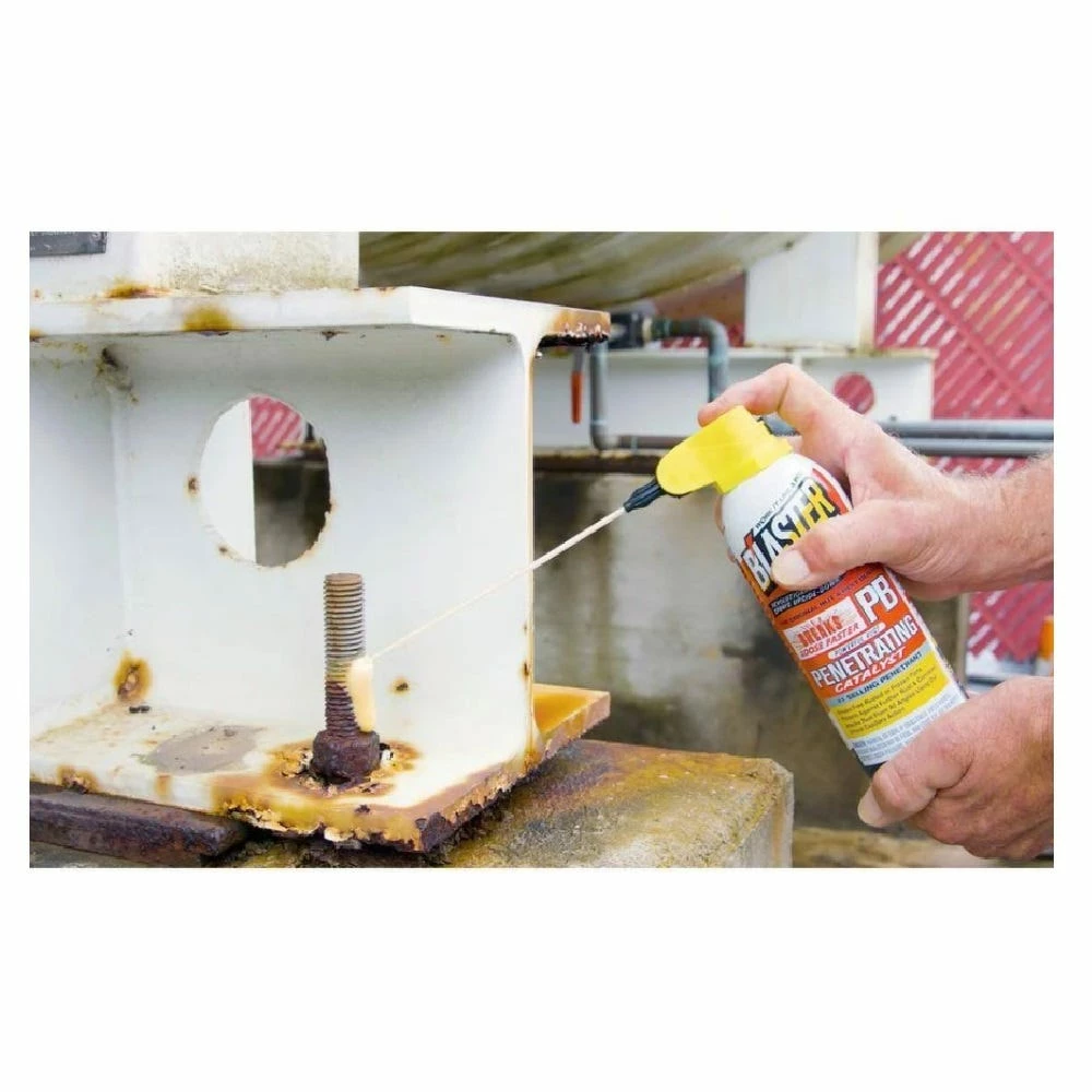 The #1-selling penetrant since 1957, PB B’laster quickly busts loose rusted or frozen parts caused by rust and corrosion. It also contains a non-evaporating lubricant that saves time and equipment and protects against further rust and corrosion. Penetrating lubricants loosen fasteners or bolts that are stuck or frozen in place so they can be removed or separated. These liquids seep into crevices or small spaces between threaded parts to release them. They can displace moisture and prevent corrosion between fasteners. Penetrating lubricants evaporate more quickly than other lubricants, so they are better used for short-term lubrication.