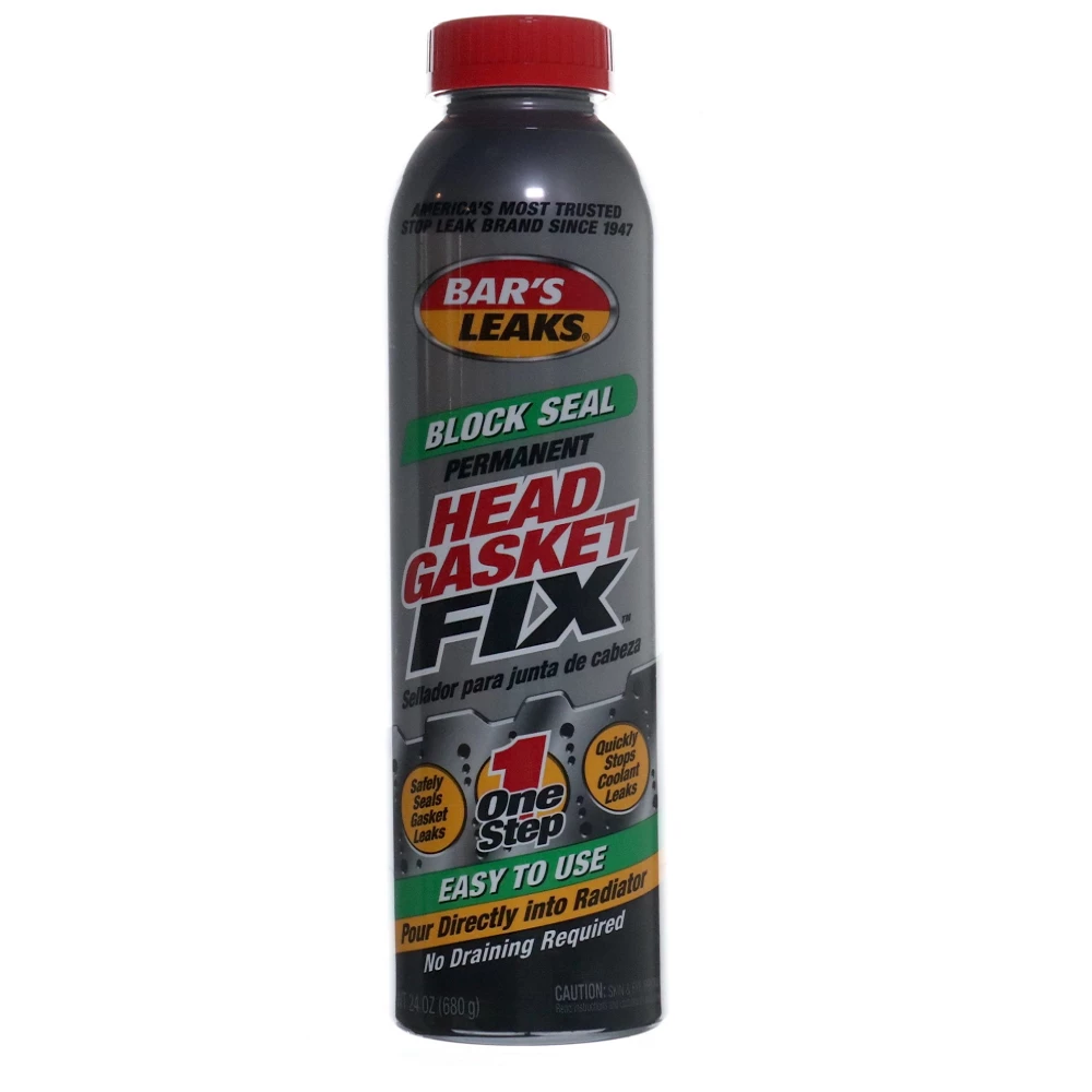Bar’s Leaks® Block Seal Head Gasket Fix is the easiest solution to stop head gasket coolant leaks. No draining of the cooling system is required. One step formulation contains a combination of antifreeze compatible sodium silicate sealing liquid and various size gasket sealing particles which penetrate gaps and cracks then harden to permanently stop leaks.