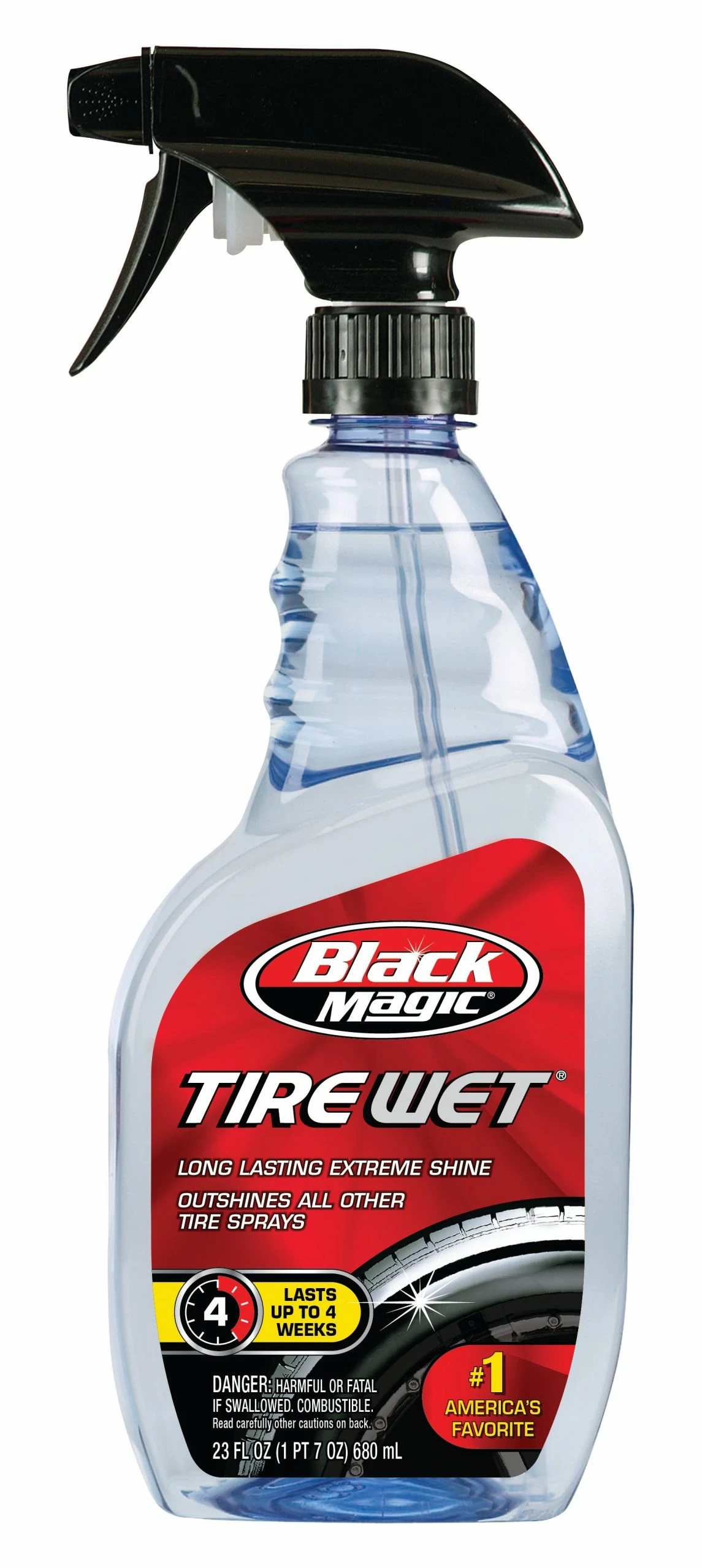 - With one quick spray, this tire dressing leaves tires looking wet, black, and glossy