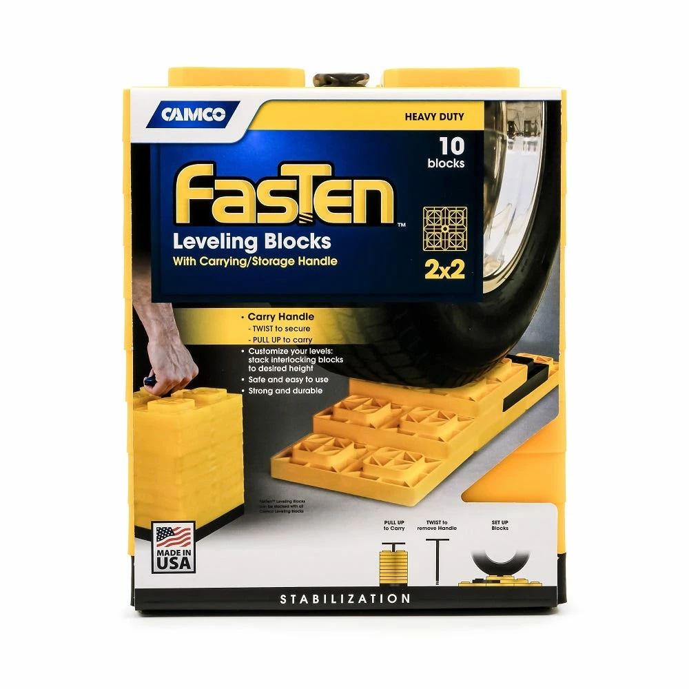 Camco FasTen Yellow Leveling Blocks with Carrying/Storage Handle – 44512