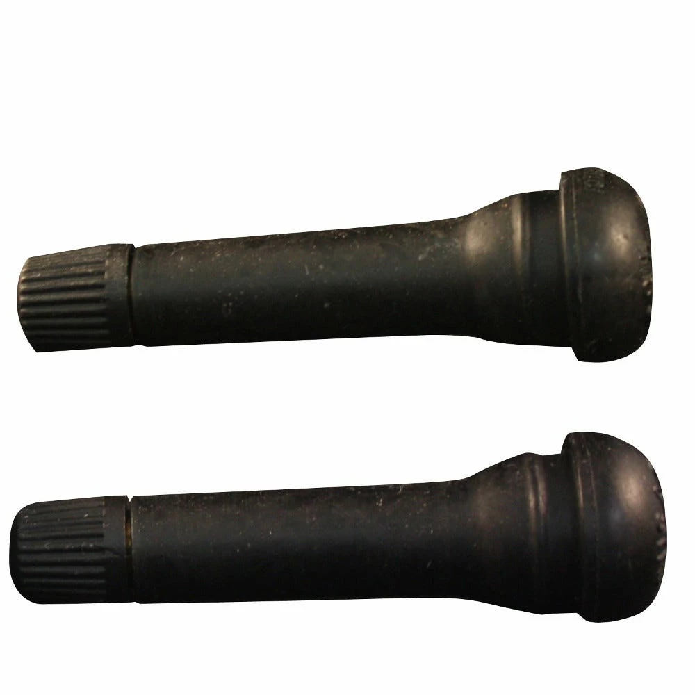 These Milton 2″ Tubeless tire valves are the snap in type with a cap thread size of .305-32. Standard rubber replacement valve fits rim hole diameter 0.453″. Maximum cold inflation pressure of 60 PSI and has is TR # 418.