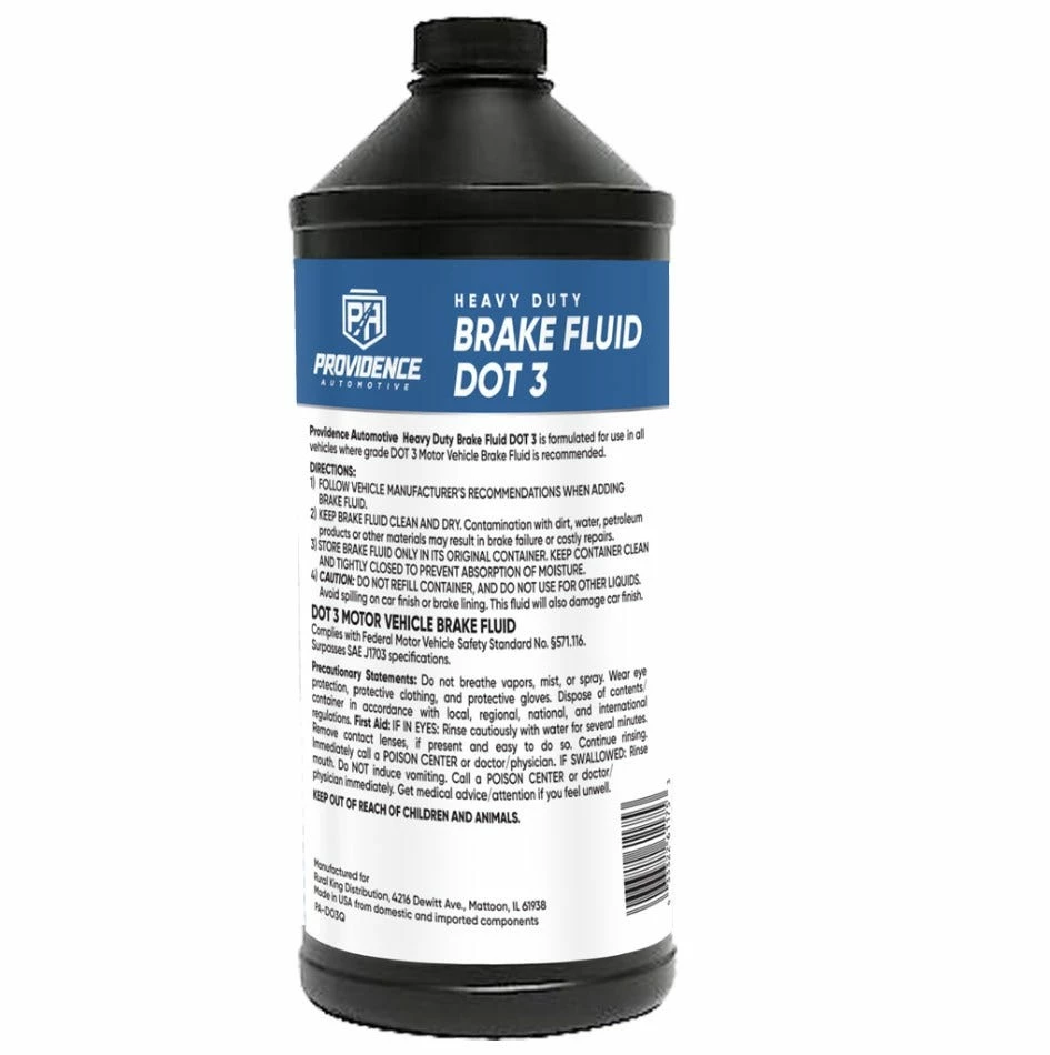 Providence Automotive Heavy Duty DOT 3 Brake Fluid is a balanced blend of premium grade glycol ethers with lubricants and inhibitors designed for corrosion protection and controlled rubber swell.