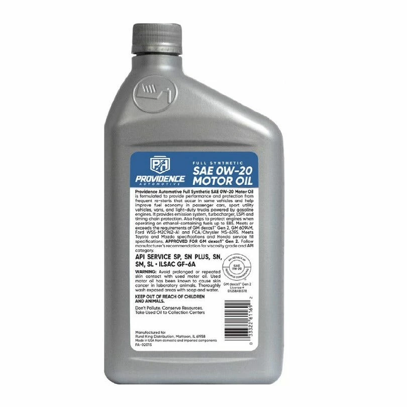 Providence Automotive Oil Full Synthetic 0W20, 1 Quart – PA-0201S – Motor Oil
