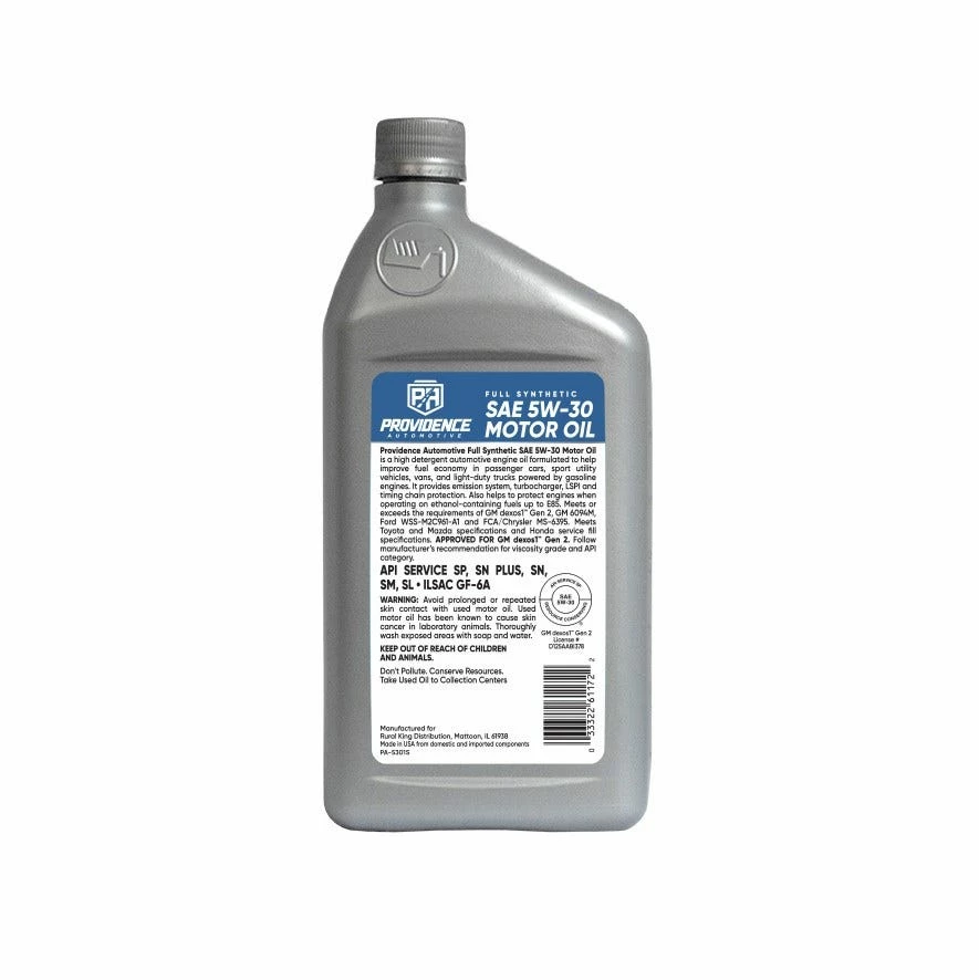 Providence Automotive Oil Full Synthetic 5W30, 1 Quart – PA-5301S – Motor Oil