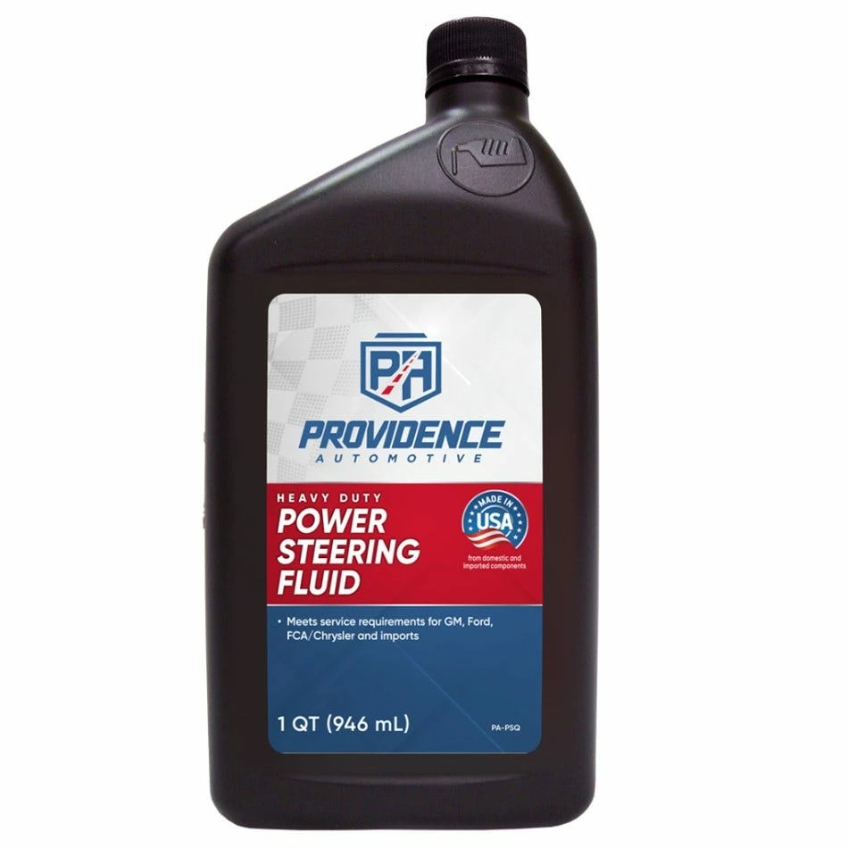Providence Automotive Heavy Duty Power Steering Fluid helps maintain the performance, condition, and efficiency of power steering units. It features Anti-wear protection. Rust and oxidation inhibitor. Anti-wear protection. Prevents squeals and protects seals and hoses.