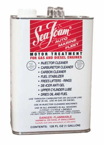 Sea Foam Motor Tune Up Treatment 1Gal (128 Oz). SF-128. SEA FOAM Motor Treatment is a 100% pure petroleum product that safely and effectively cleans internal fuel and oil system components, helping your gasoline or diesel engine run cleaner and more efficiently. SEA FOAM is an EPA-registered product, and will not harm engine components, seals, gaskets, catalytic converters or oxygen sensors.