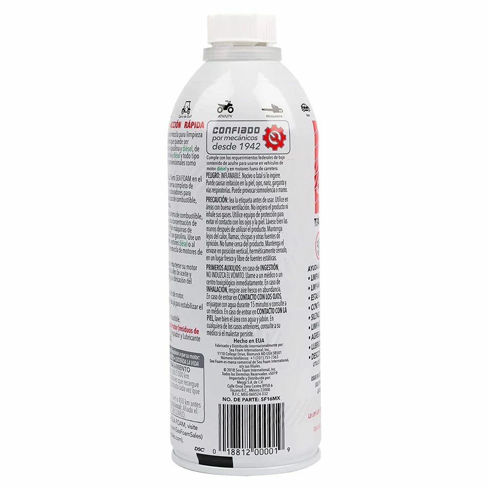 Sea Foam® Motor Treatment is a 100% pure petroleum product that safely and effectively cleans internal fuel and oil system components, helping your gasoline or diesel engine run cleaner and more efficiently. Sea Foam® is an EPA-registered product and will not harm engine components, seals, gaskets, catalytic converters or oxygen sensors. Sea Foam® liquefies gum and varnish deposits or internal engine contaminants, removing carbon deposits, freeing sticky valve lifters and rings, improving idle quality, pinging and hesitation problems.