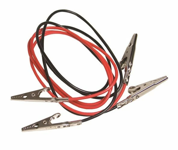 Set of non-insulated alligator clips with 30″ wire, red and black.