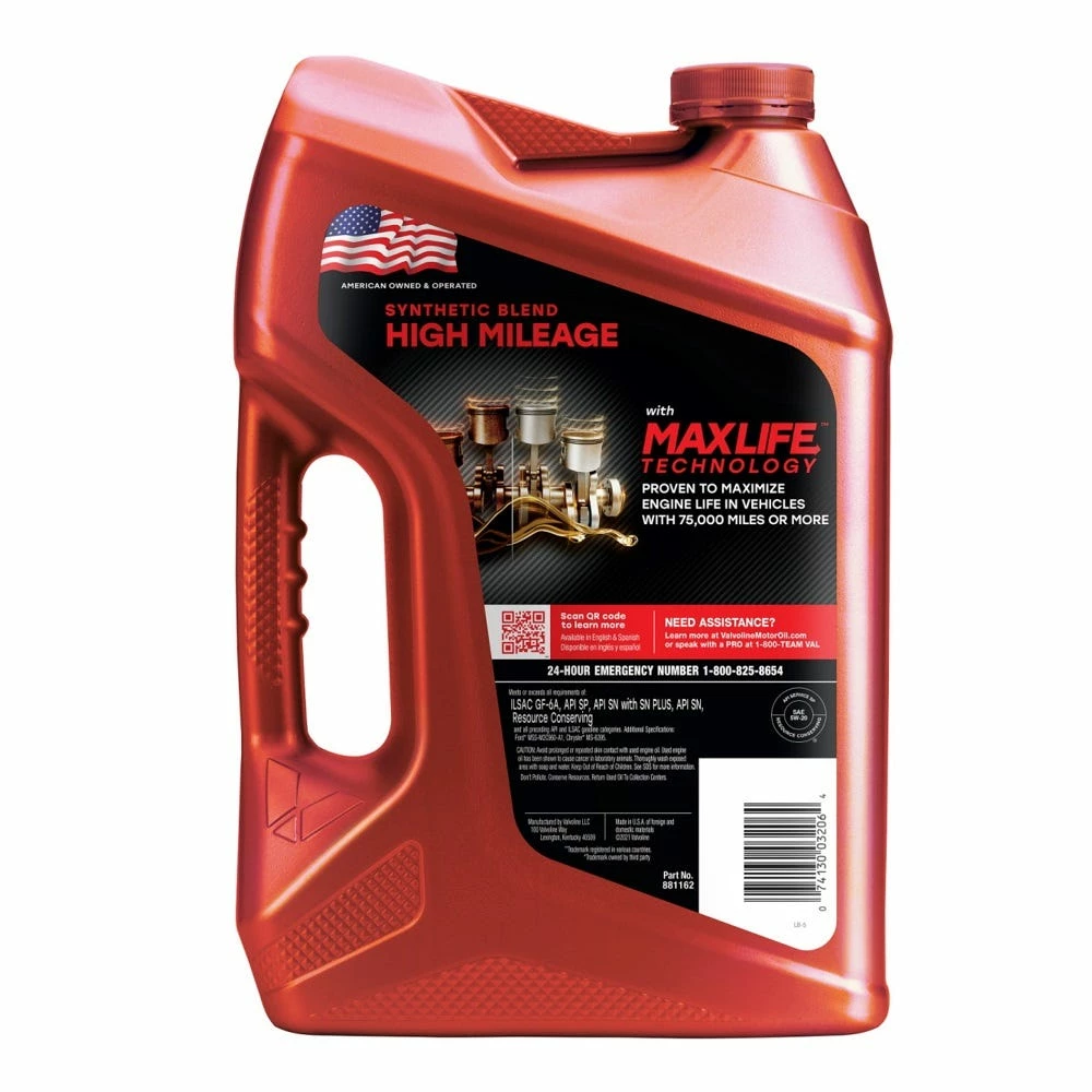 Valvoline High Mileage with MaxLife Technology SAE 5W-20 Synthetic Blend Motor Oil, 5 Quart – 881162